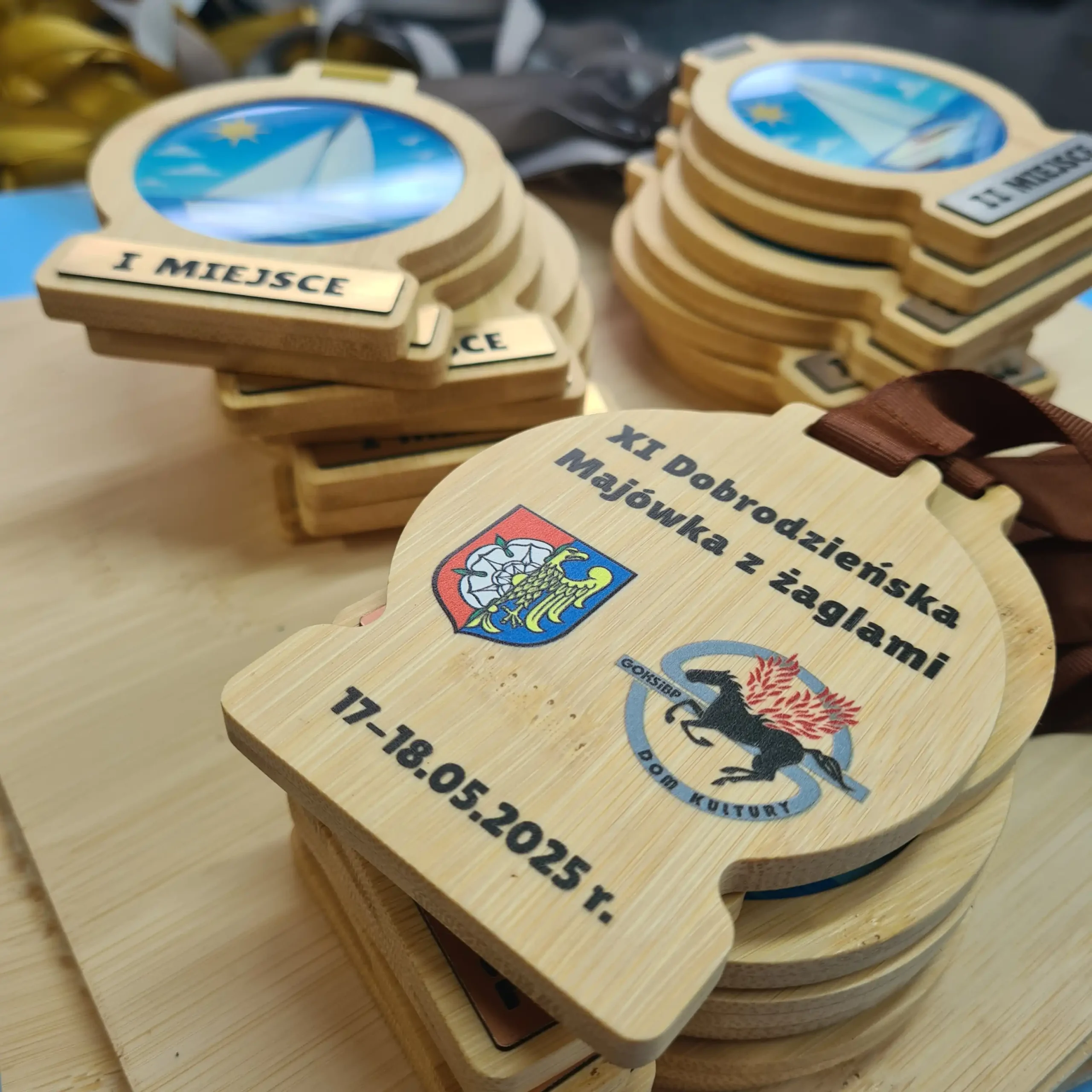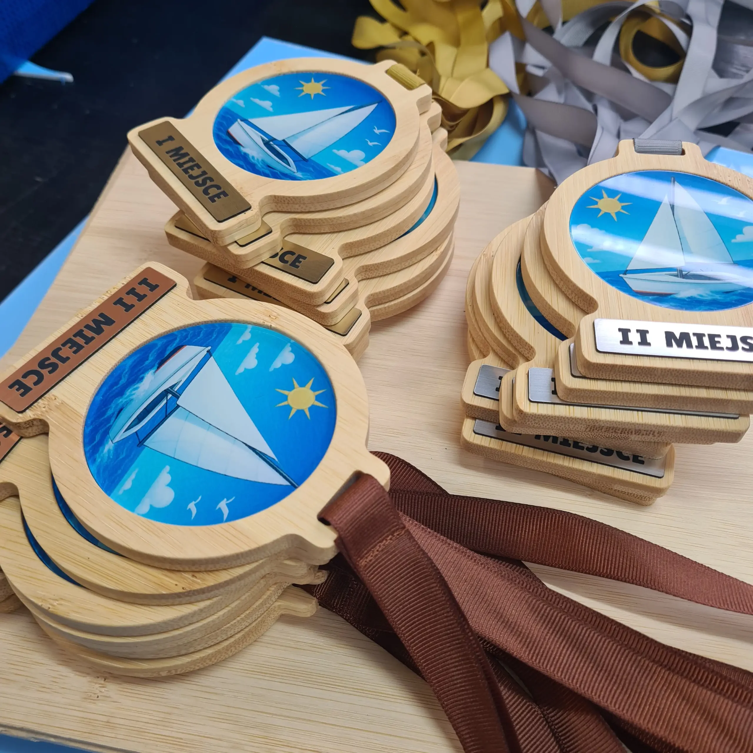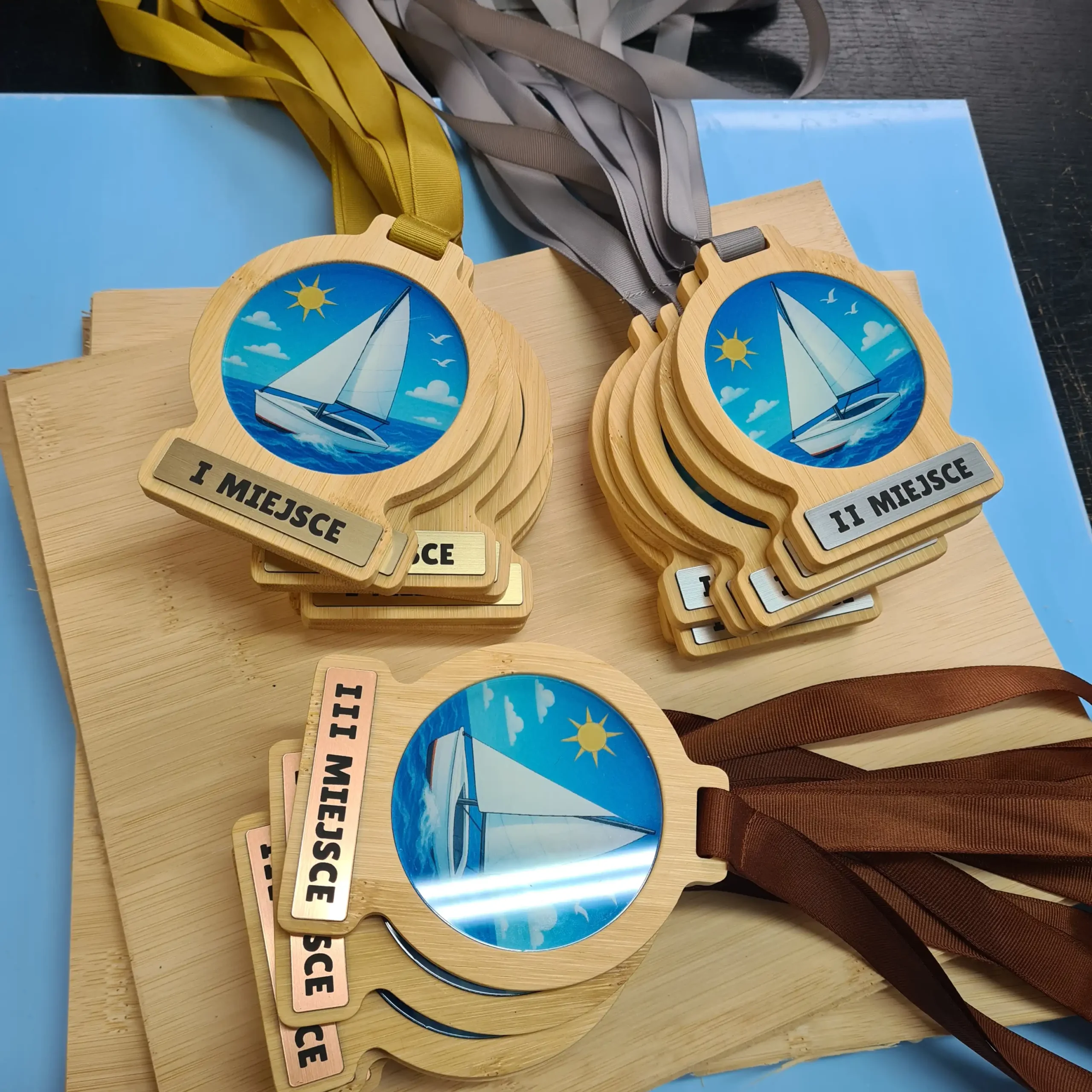 Oryginalne medale wykonane z drewna bambusowego, które wyróżniają się lekkością i nowoczesnym charakterem.