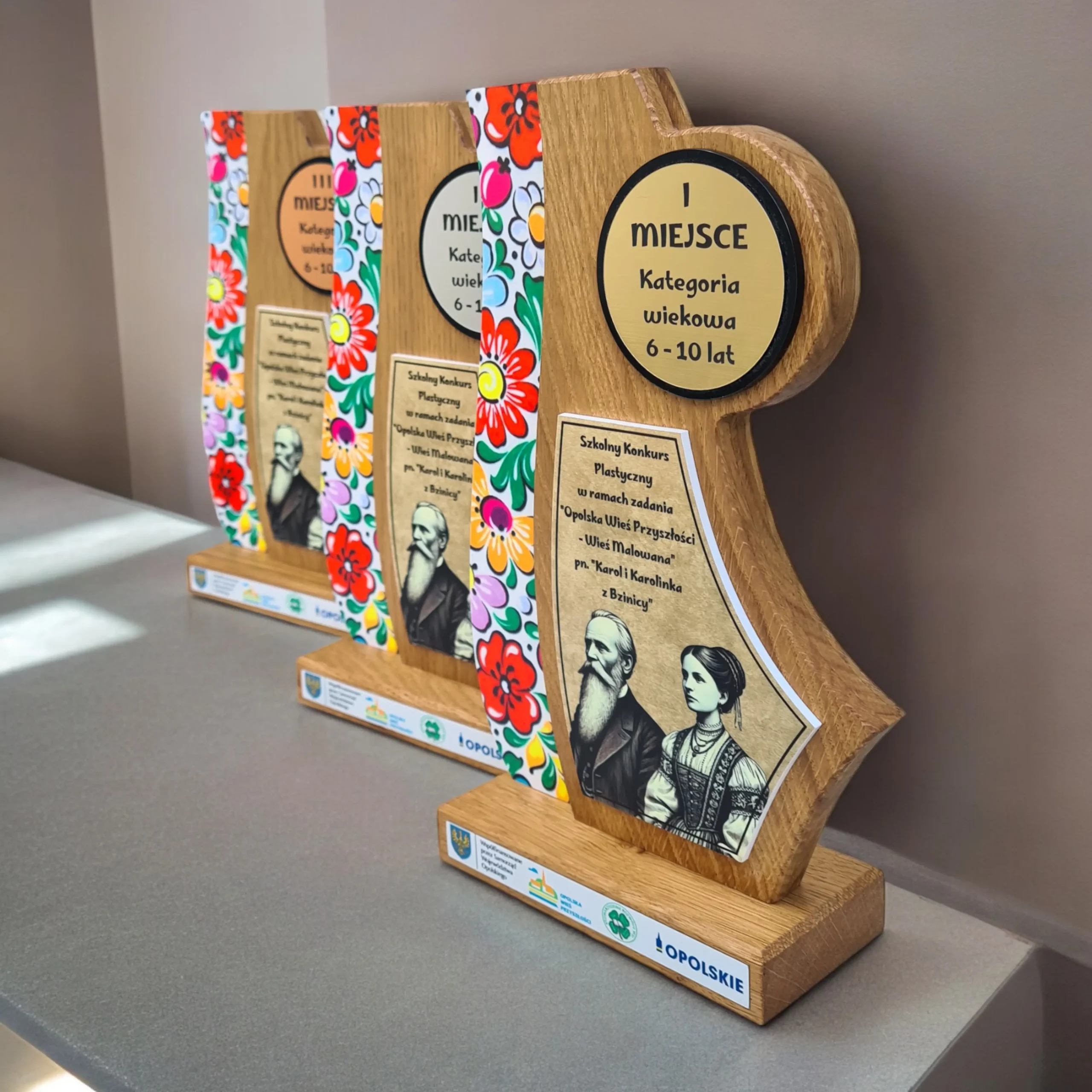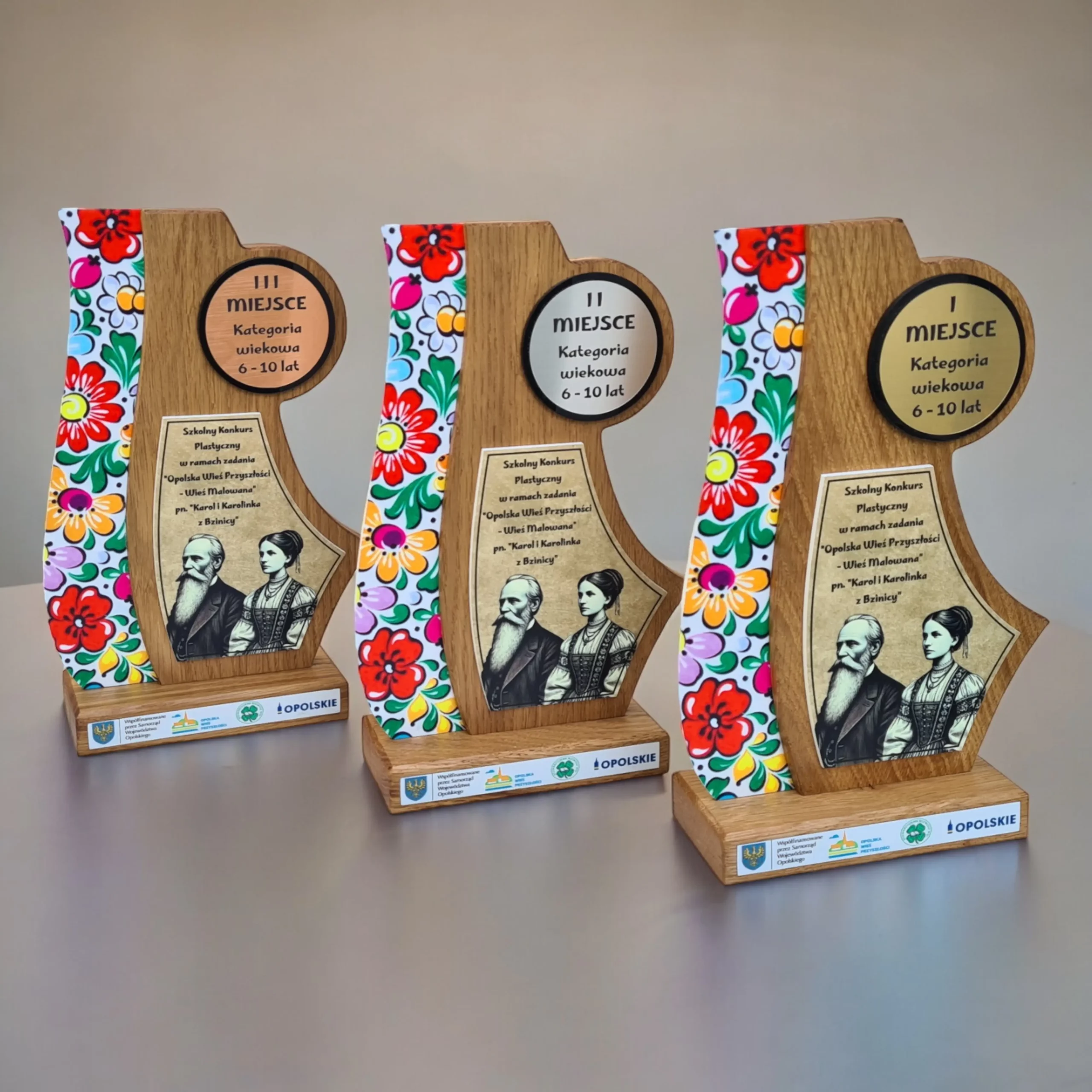 Statuetki zostały wykonane na konkurs Opolska Wieś Przyszłości. Na statuetkach zostały umieszczone podobizny Karola i Karolinki z Bzinicy.