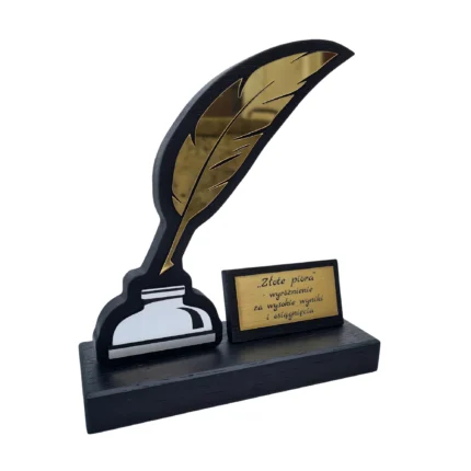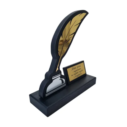 Drewniana Statuetka Złote Pióro Statuetka Naukowa Osiągnięcia W Nauce