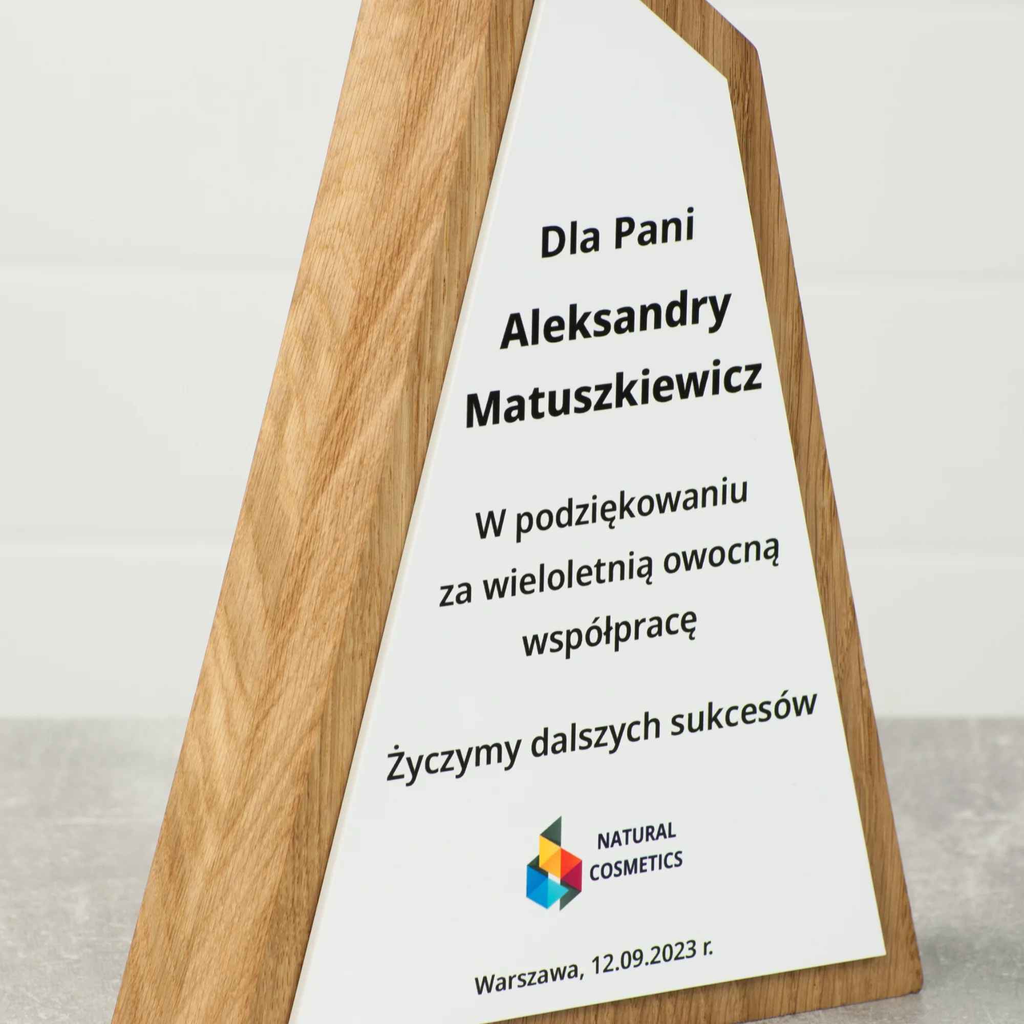 Drewniana Nowoczesna Statuetka Uniwersalna Biznesowa Sportowa Podziękowanie Sukcesy