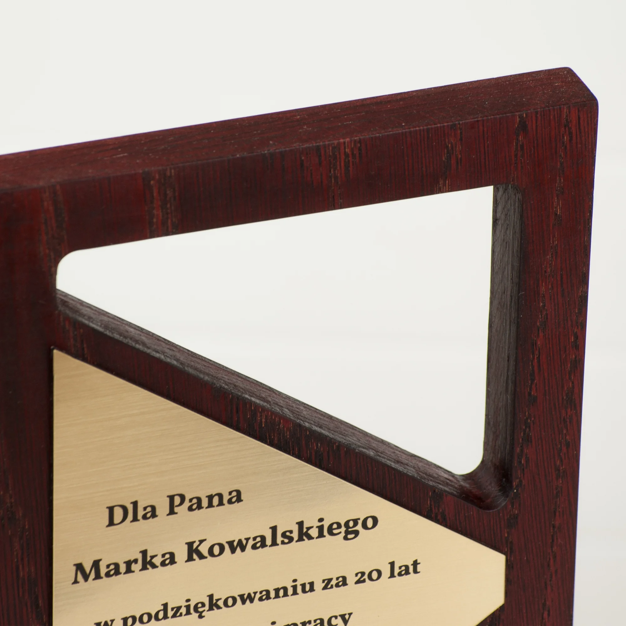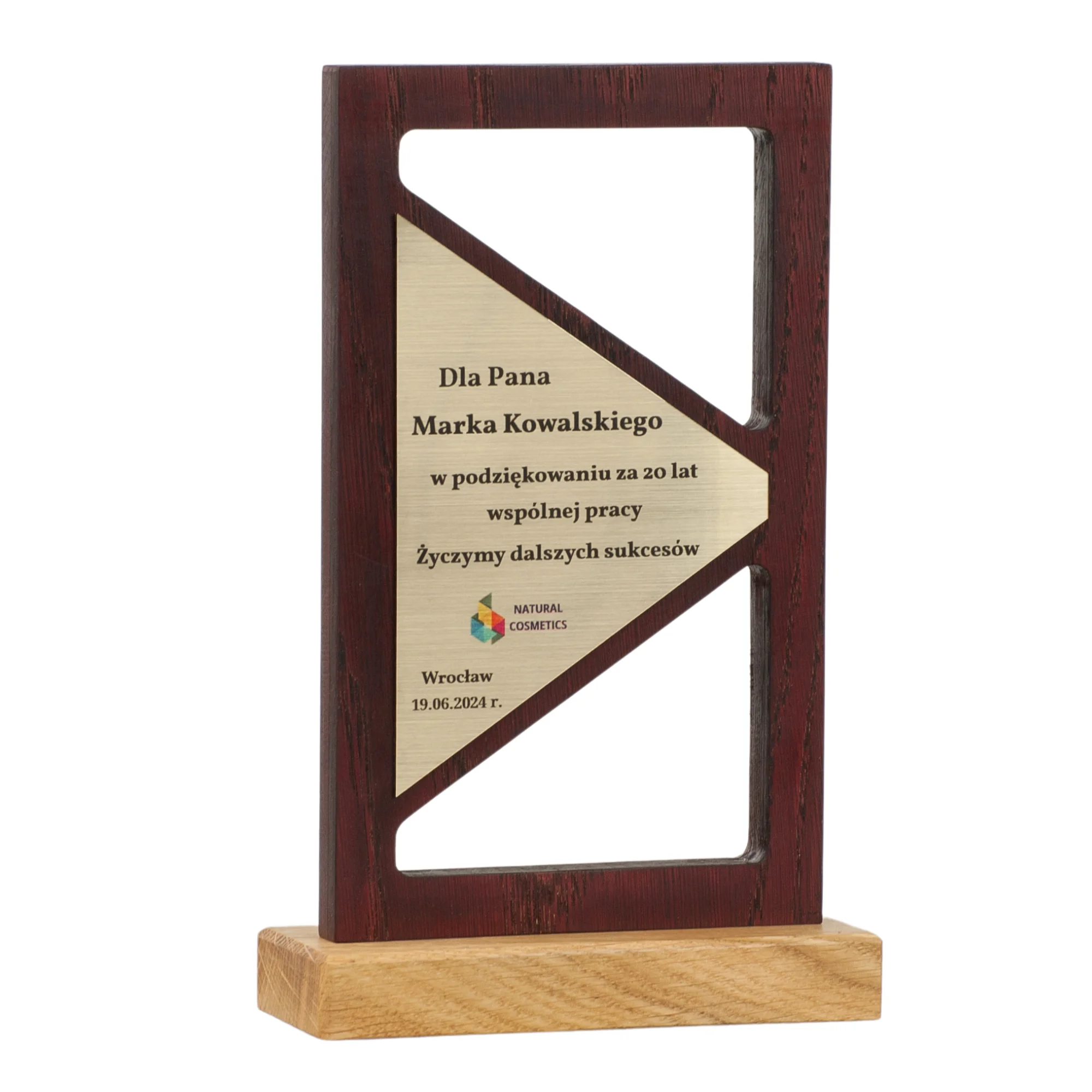 Nasza drewniana dębowa statuetka w kolorze Machoń stanowi wspaniały sposób wyrażenia uznania, wdzięczności, celebrowania osiągniętych celów między innymi w kategoriach biznesu oraz działalności charytatywnej. Może być także wręczona jako podziękowanie w wielu innych aspektach życiowych. Wykonane z solidnego dębu, to trofeum łączy elegancję z trwałością, tworząc wyjątkowy prezent, który przekazuje znaczące przesłanie na każdą okazję.