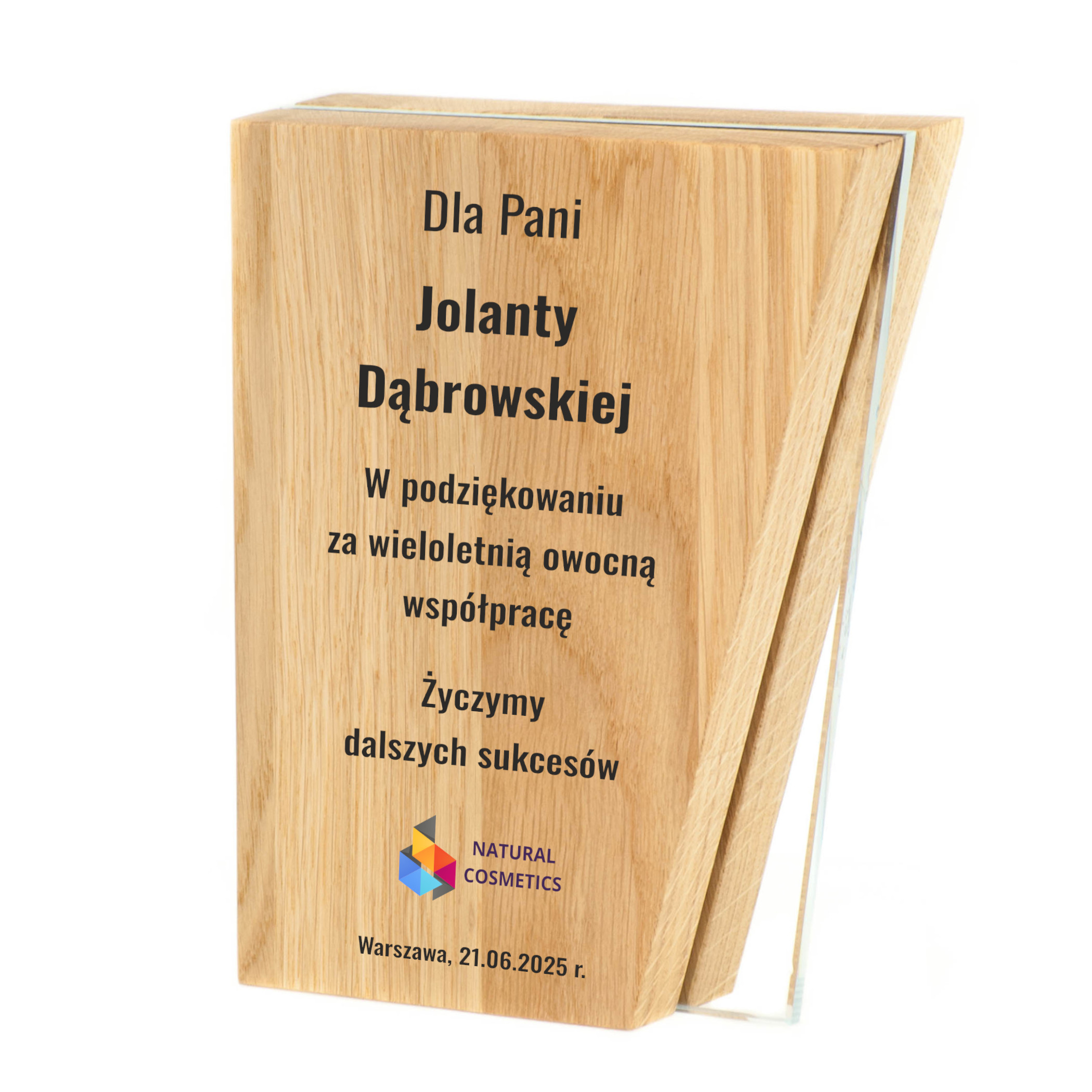 Nowoczesna Statuetka Biznesowa Podziękowanie Drewno Szkło