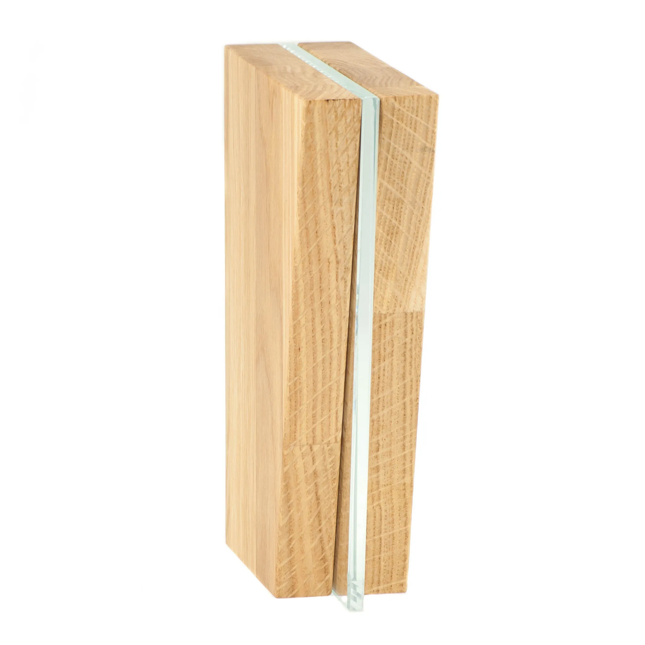 Nasza wyjątkowa statuetka to połączenie nowoczesnego szkła Optiwhite oraz naturalnego dębu, które razem tworzą elegancki i trwały symbol wdzięczności, sukcesu oraz partnerstwa. Doskonale sprawdzi się jako nagroda w środowisku biznesowym, prezent z okazji jubileuszu, wyróżnienie dla osób działających społecznie czy symboliczny gest podziękowania.