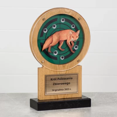 Projekt i Realizacja: Nasza statuetka dla myśliwego to owoc starannej pracy. Każda statuetka jest ręcznie wykonana z najwyższej jakości dębu, co sprawia, że produkt jest nie tylko elegancki, ale także trwały. Dedykacja dla myśliwego widoczna jest w każdym szczególe.
