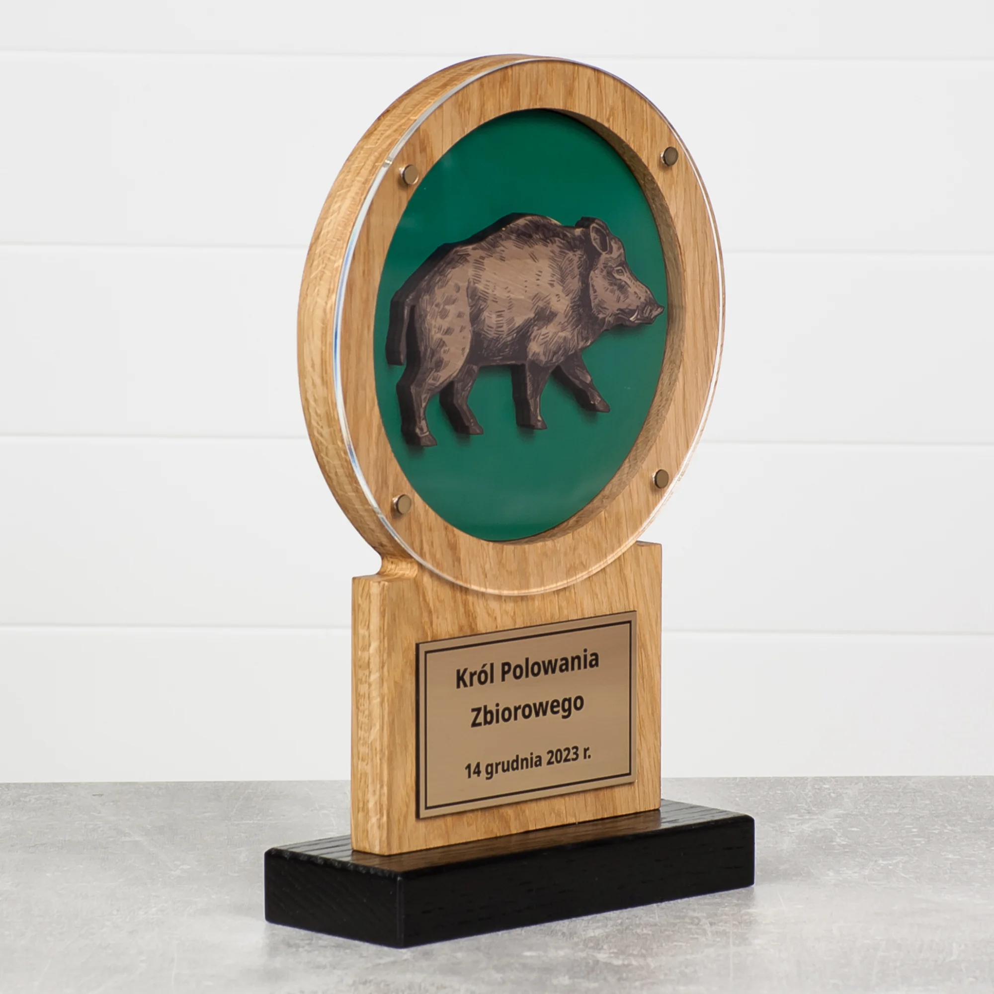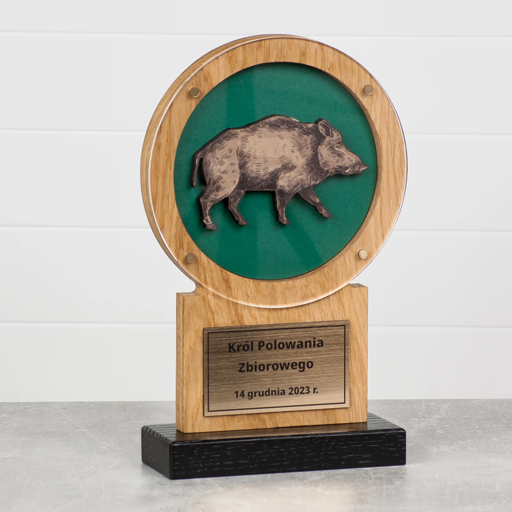 Projekt i Realizacja: Nasza statuetka dla myśliwego to owoc starannej pracy. Każda statuetka jest ręcznie wykonana z najwyższej jakości dębu, co sprawia, że produkt jest nie tylko elegancki, ale także trwały. Dedykacja dla myśliwego widoczna jest w każdym szczególe.