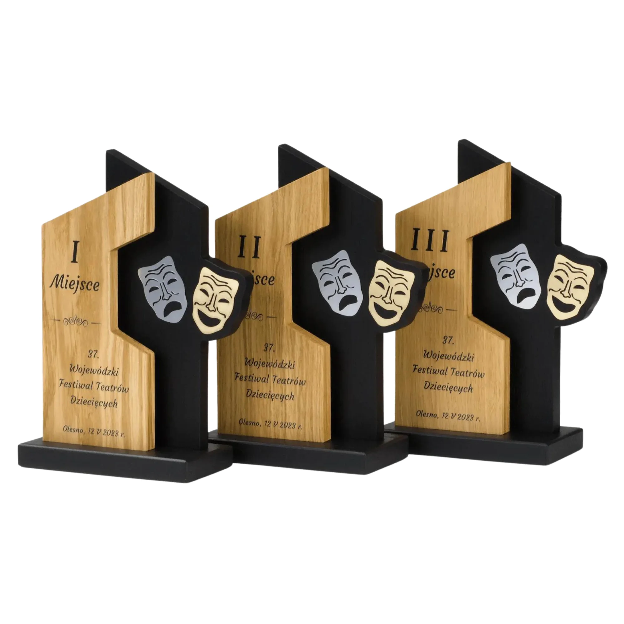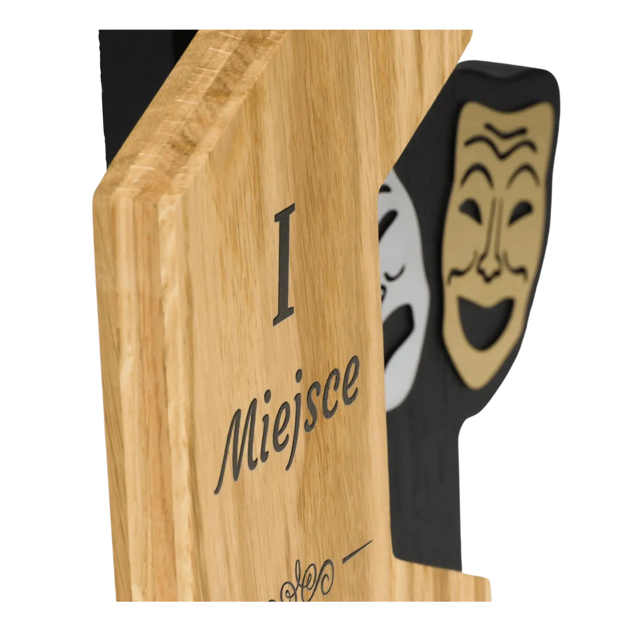 Drewniana Statuetka Nagroda Teatralna Maski Teatralne – drewno dębowe