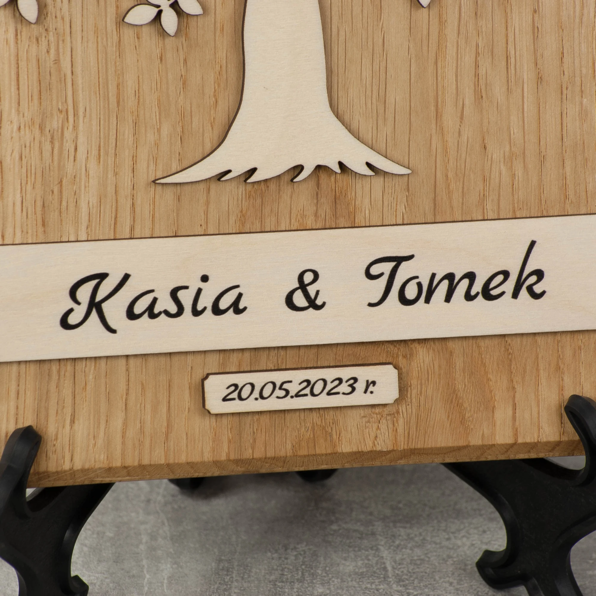 ✅ DREWNO – Podkład podziękowania to wysokiej jakości naturalne lite drewno dębowe. Nie stosujemy tanich folii, oklejonych płyt MDF, czy też forniru.